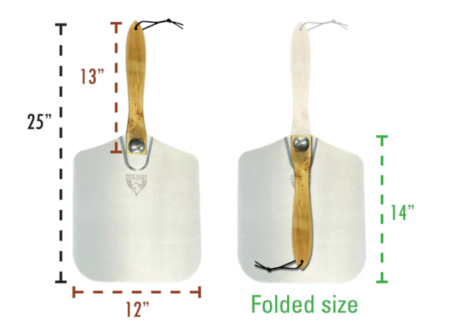 The 12-inch by 14-inch foldable pizza peel, with its total length of 25 inches, allows you to slide pizzas in and out of the oven effortlessly, ensuring a smooth and easy pizza-making process.