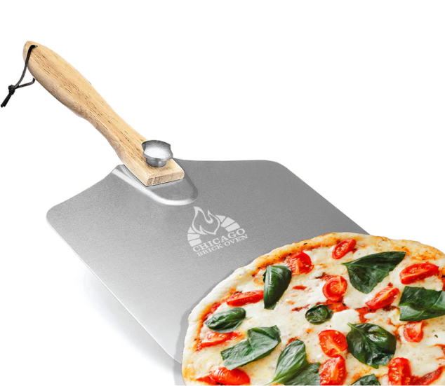 Chicago Brick Oven Aluminum Pizza Peel - Turning Pizza Paddle with Leather Strap and Detachable Wood Handle - Bakeware & Pizza Oven Accessories - 9 in
